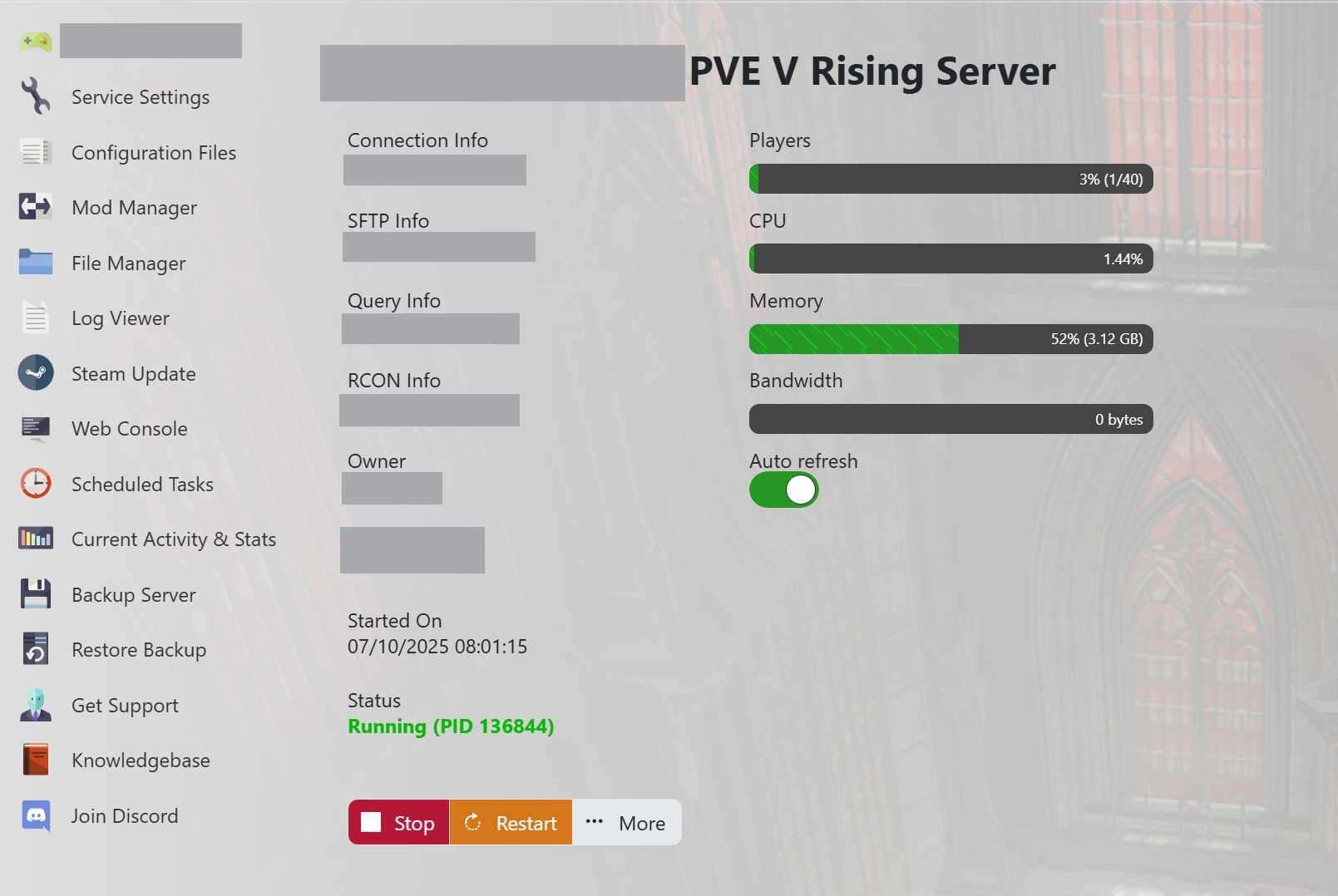 One of the great things we love about V Rising is the fact that the devs are really great at updating the game to include new features as well as to fix bugs. When a new update releases you will also want to update your server to take advantage of what the latest updates have to offer. Follow this guide on how to update your server.
