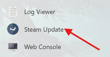 • Press the ‘Steam Update’ button on your panel. This will launch the ‘Steam Update’ window which will show you the status of the update. The update may take some time depending on how much it has to update. When it finishes updating it will show ‘The process has completed’. You can then close the window.