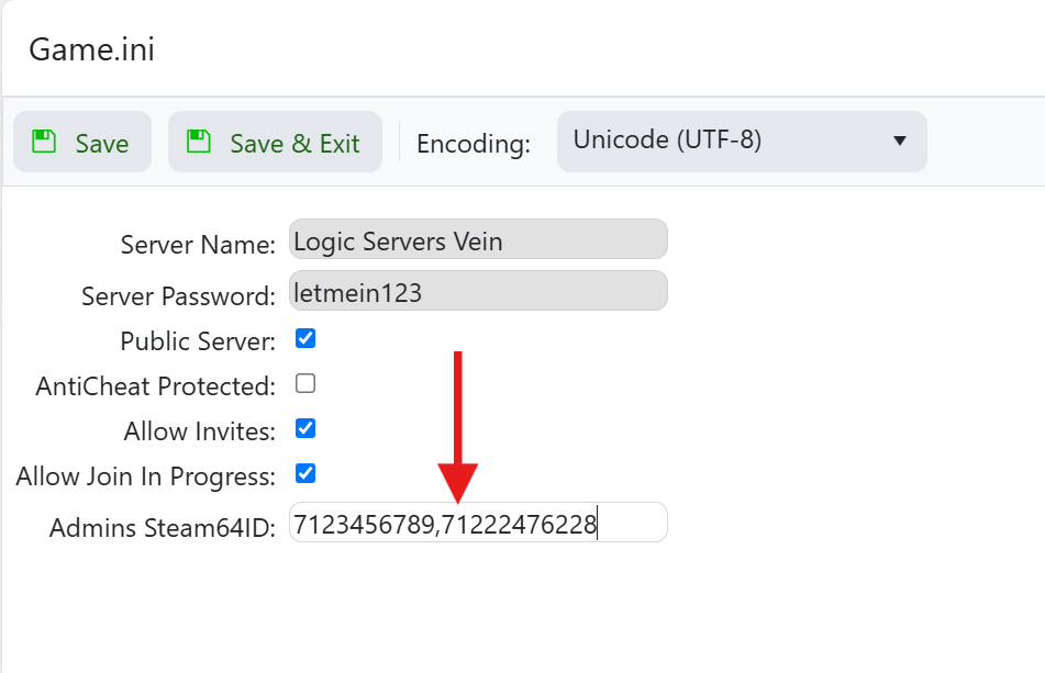 • In the AdminSteam64ID box put in the Steam64 ID you took down earlier.