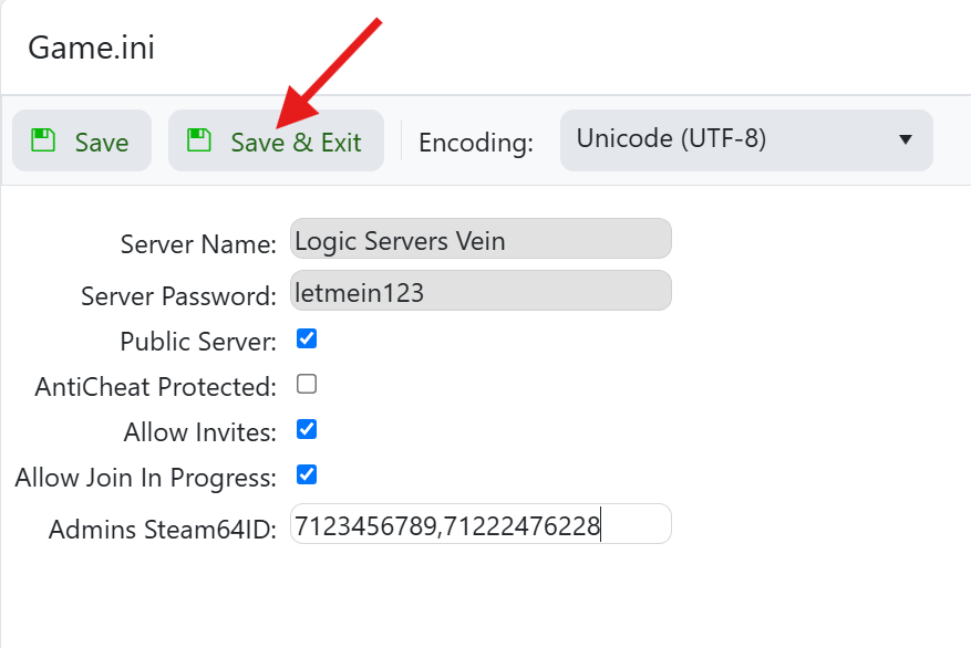 • If you do not have a server with us you can get one here - https://logicservers.com/game-servers/vein