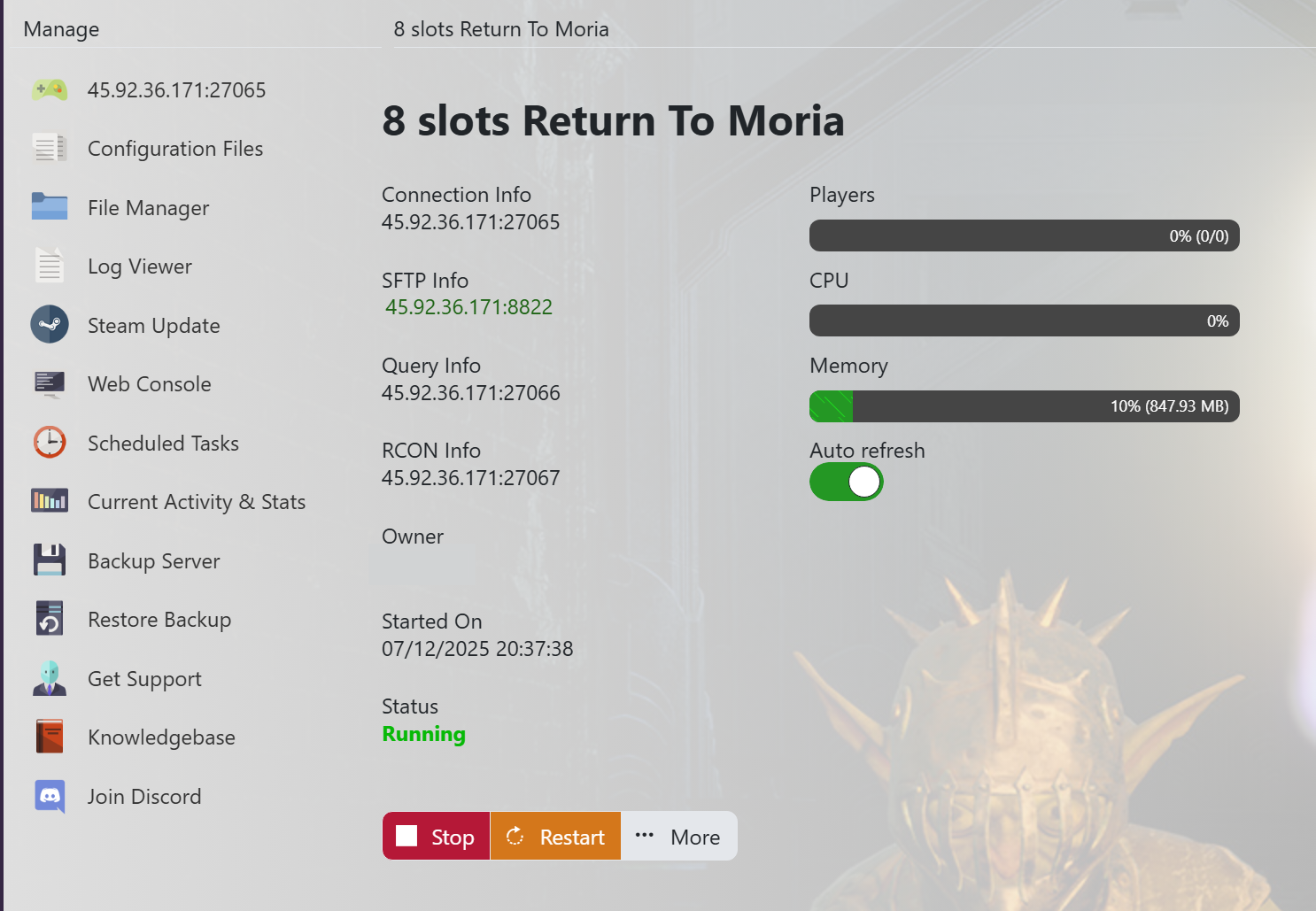- If you do not have a server with us you can get one here - https://logicservers.com/game-servers/tlotr-return-to-moria