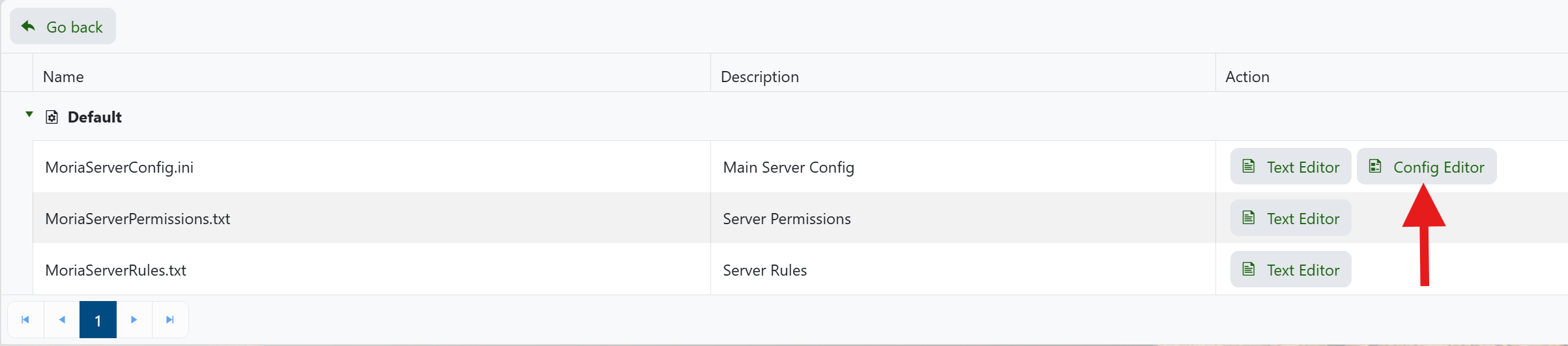 - Click on the ‘Config Editor’ button next to the ‘MoriaServerConfig.ini’.