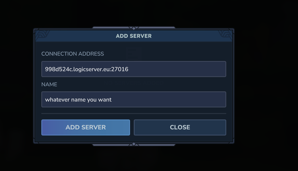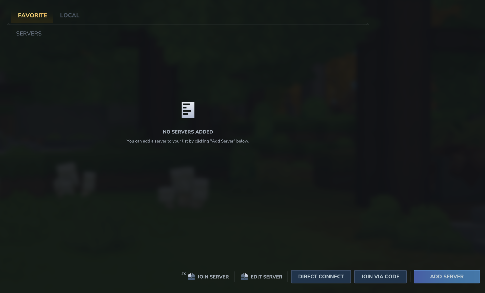 Once on that page, click on the Add Server button at the bottom of the screen, or if you just want to join once, use Direct Connect.