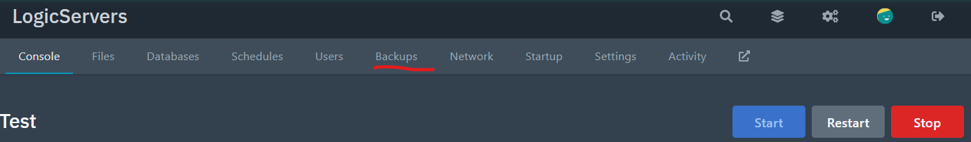 First, you'll want to go to the server you wish to backup. Then click on the backup tab at the top of the screen as show.